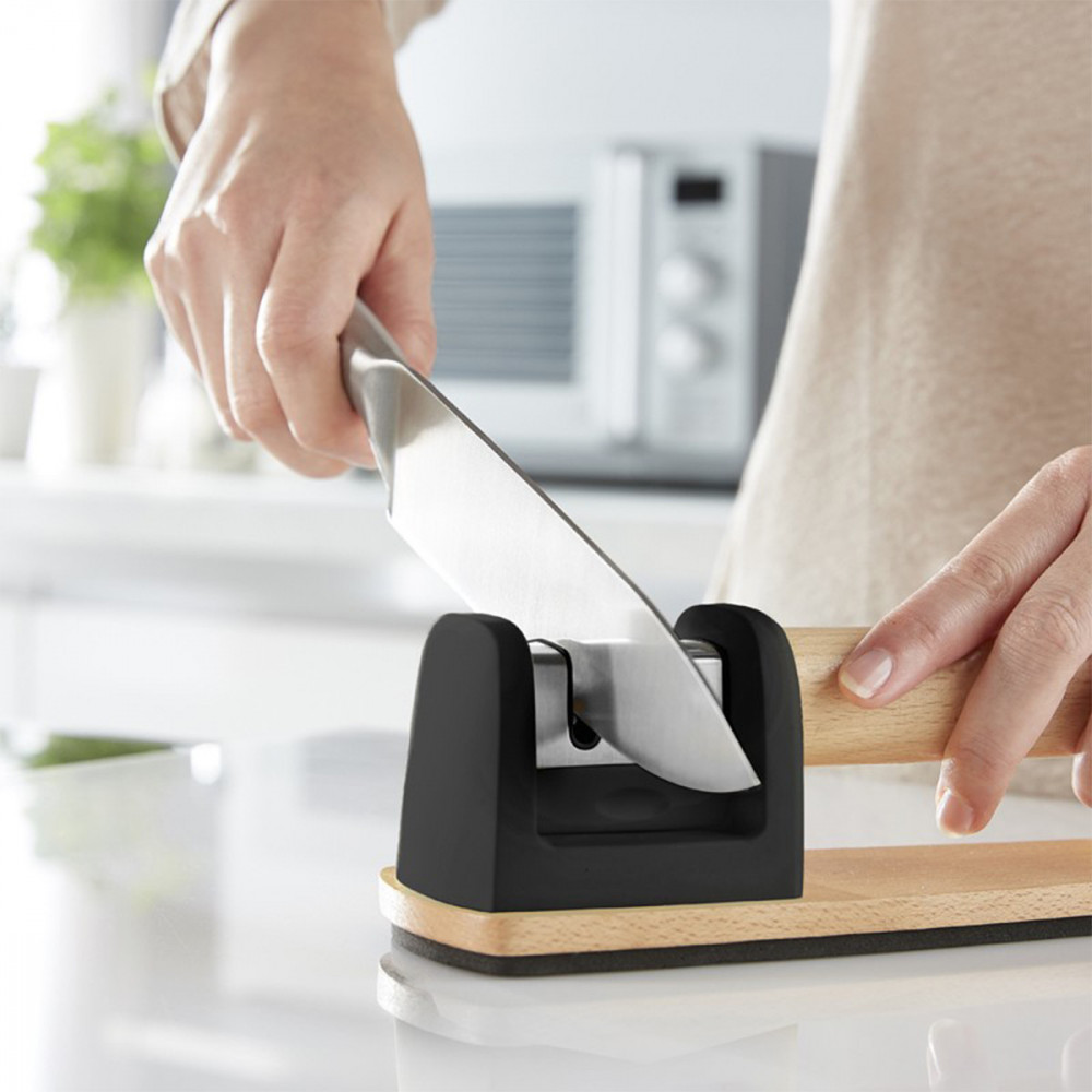 Doté d'un socle antidérapant et d'une poignée en bois, cet aiguiseur vous permet un aiguisage en toute sécurité.