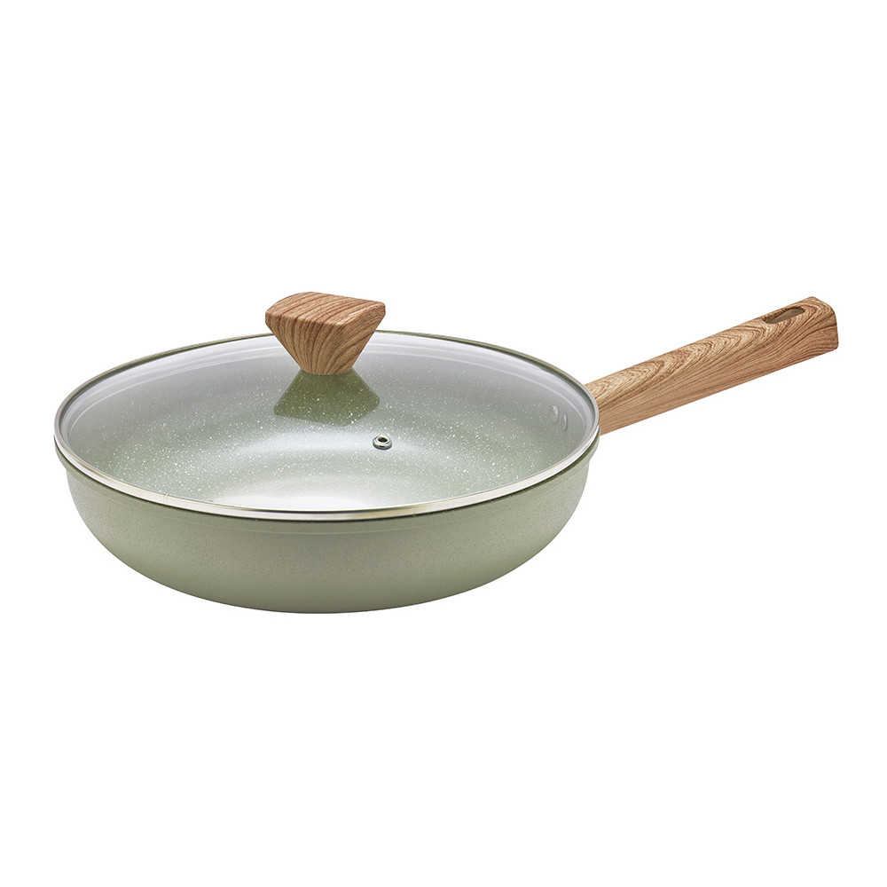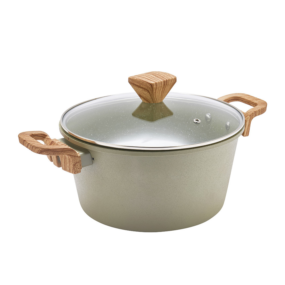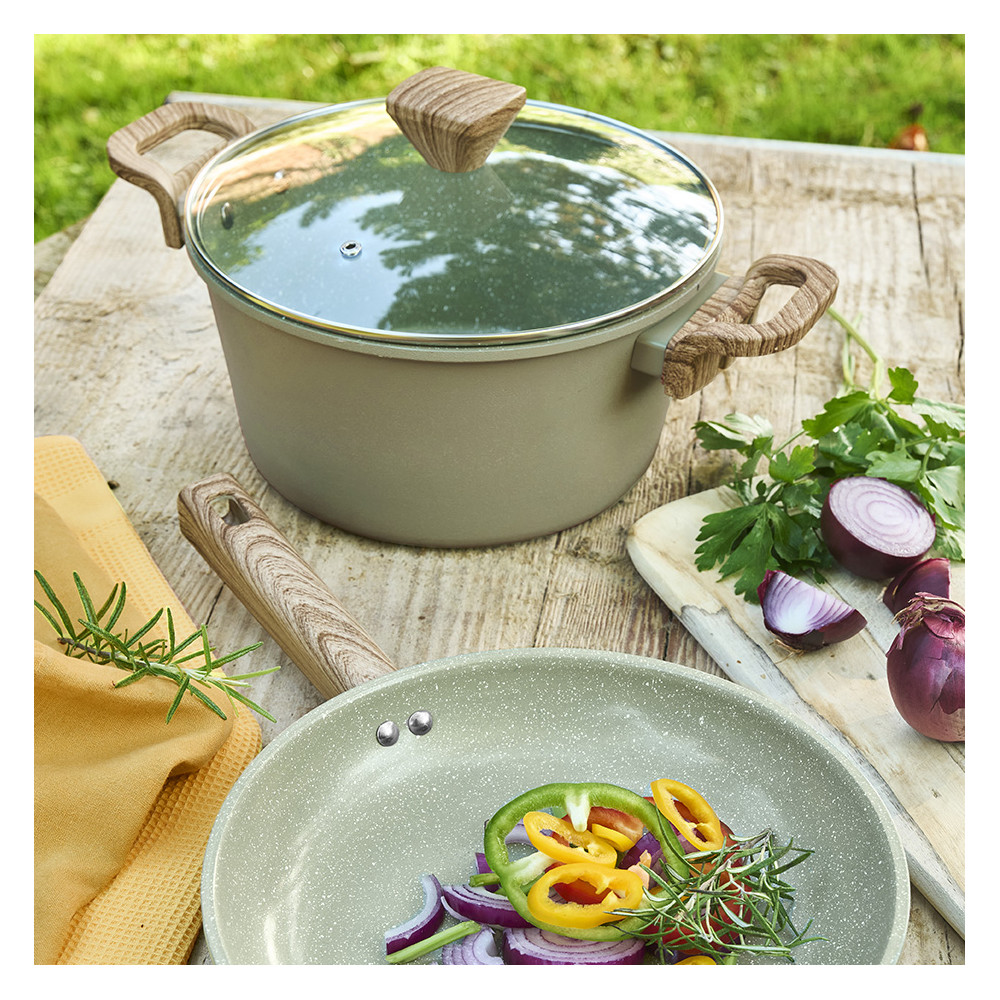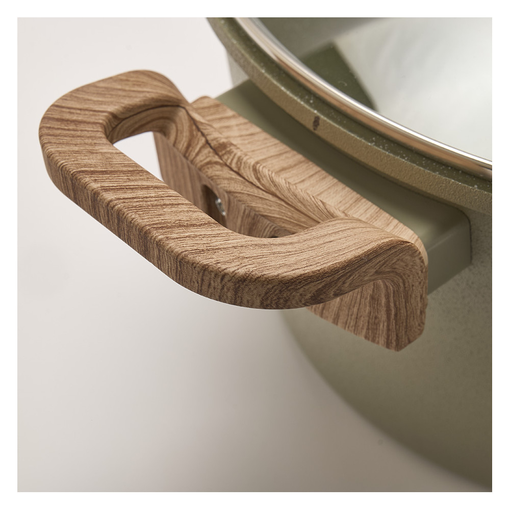 Les manches et poignées imitation bois ajoutent à cette batterie de cuisine, une touche élégante, tendance et chaleureuse.