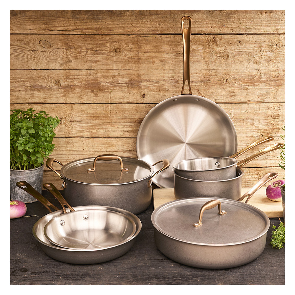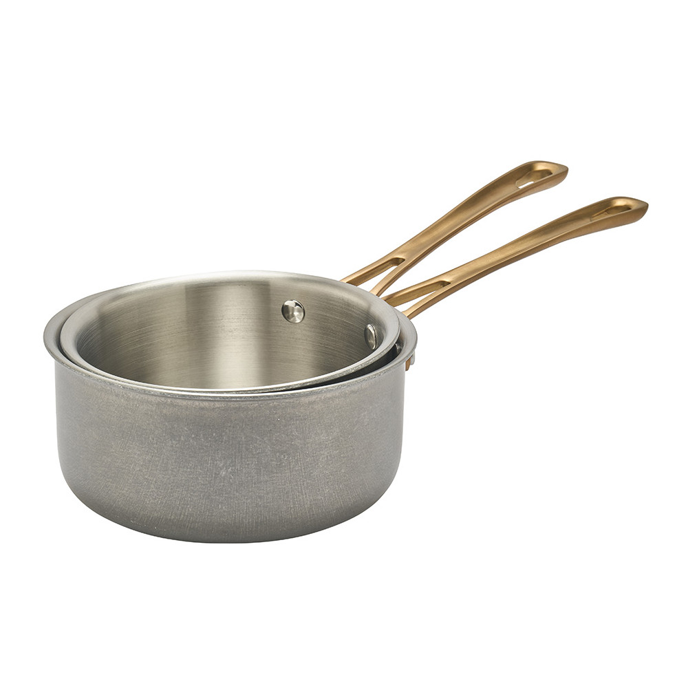 Lot de 3 casseroles inox effet cuivré + 1 manche amovible
