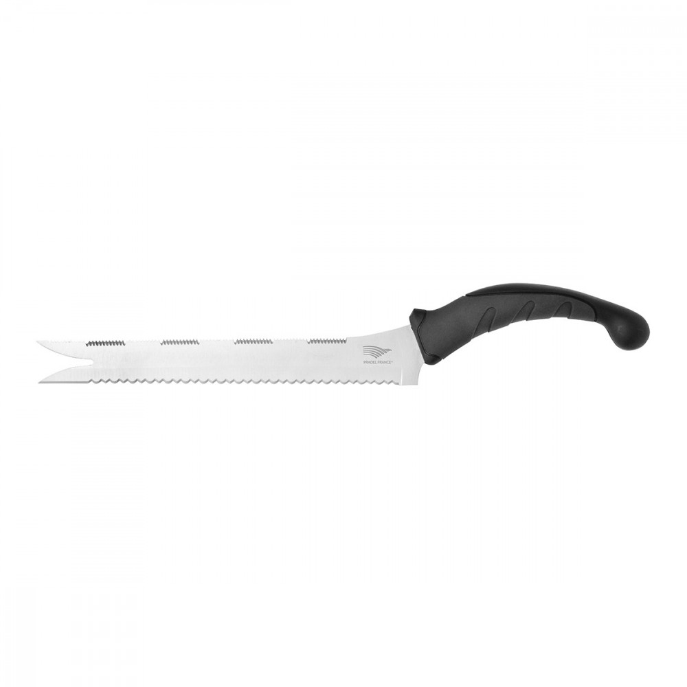 2 en 1, sa lame possède une partie pour découper les surgelés et une autre partie pour découper fromage, pain et viande.