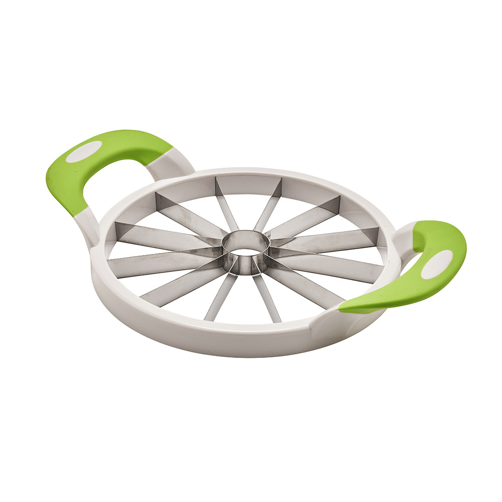 Ce découpe melon et pastèque coupe vos fruits en 12 quartiers égaux, proprement et sans effort grâce à sa lame en acier inoxydable et à ses poignées ergonomiques antidérapantes.
