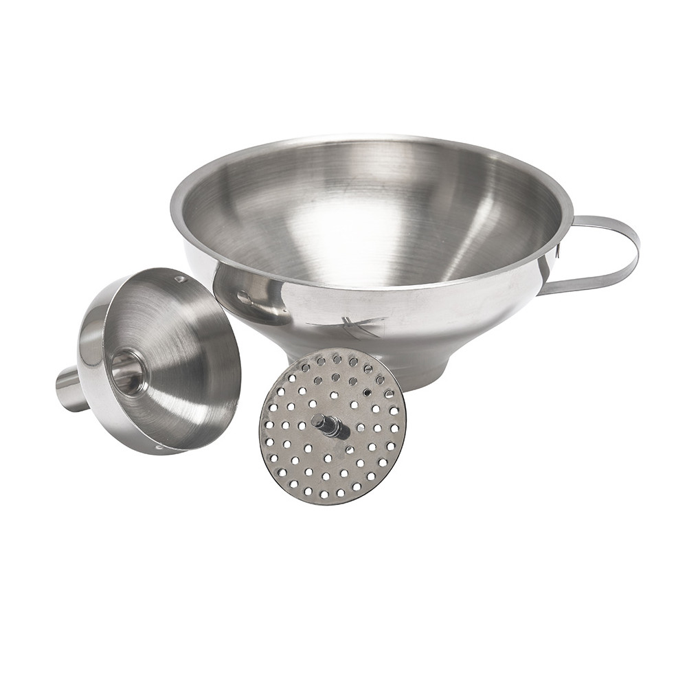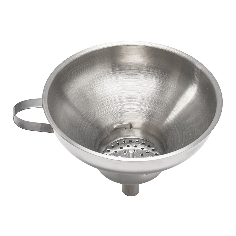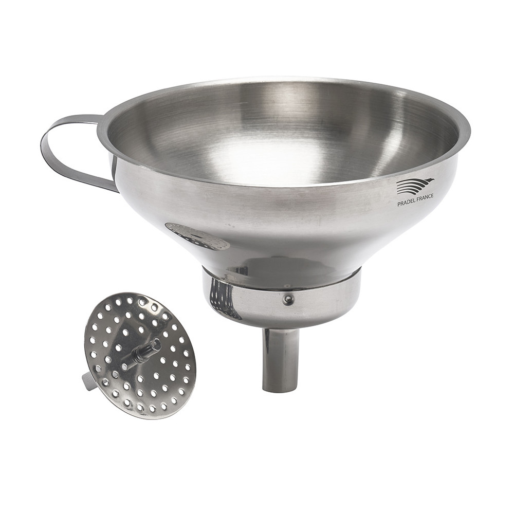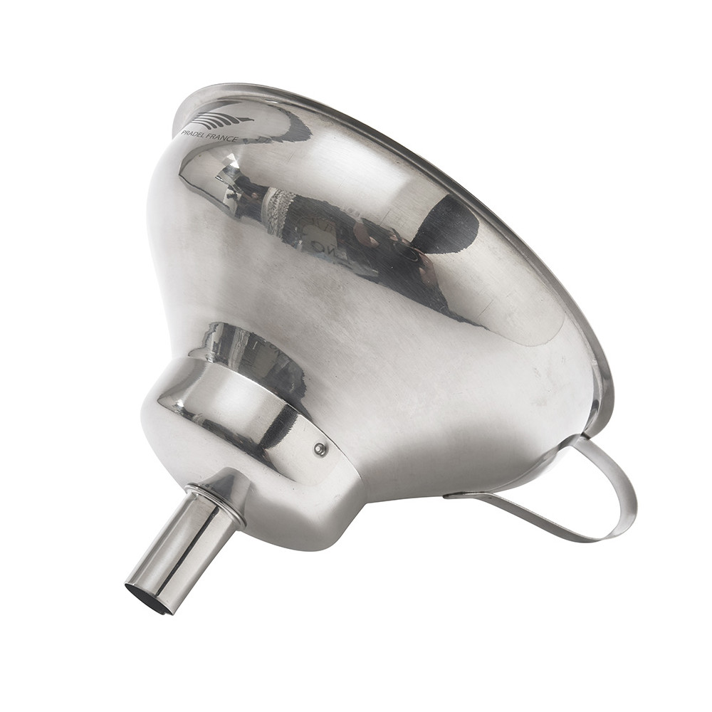 Conçu en inox, cet entonnoir avec embout et filtre se nettoie facilement.
