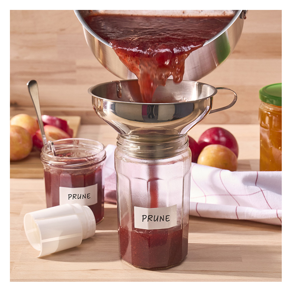 Cet entonnoir saura se rendre indispensable pour verser toute vos préparations en bouteilles ou en bocaux. Doté de 2 embouts en inox, vous pourrez verser jus de fruits maison, soupes, veloutés, et même confitures sans verser une goûte sur votre plan de travail.