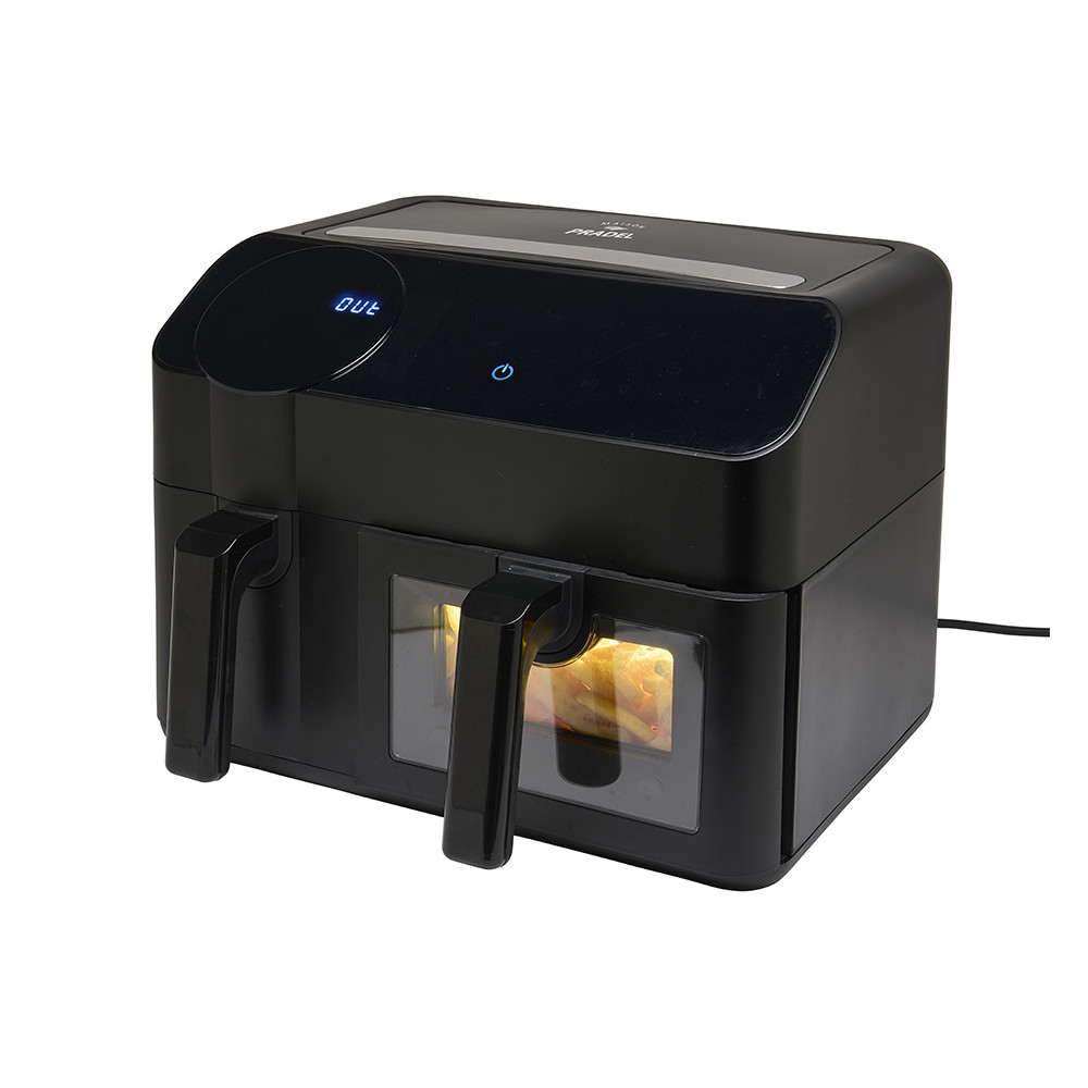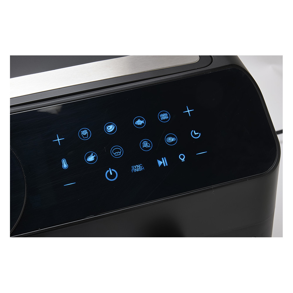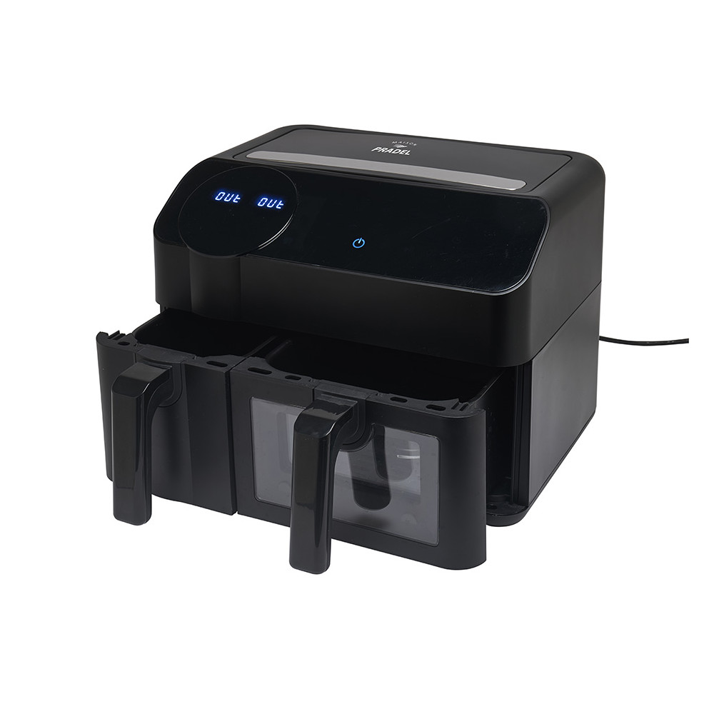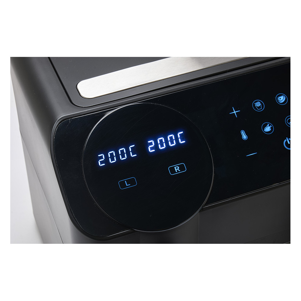 Gagnez du temps en cuisine grâce à  la friteuse sans huile double bac. Pratique elle est dotée de 2 tiroirs qui vous permettent de cuire deux préparations différentes en même temps tout en synchronisant leur fin de cuisson.