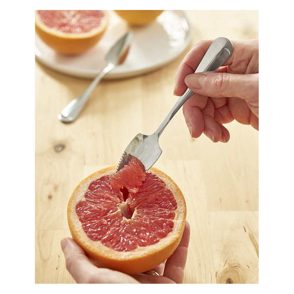 Conçues en acier inoxydable avec des bords dentelés, ces cuillères facilitent la découpe des suprêmes de pamplemousse en évitant à la pulpe de gicler. La dégustation devient alors facile et agréable.