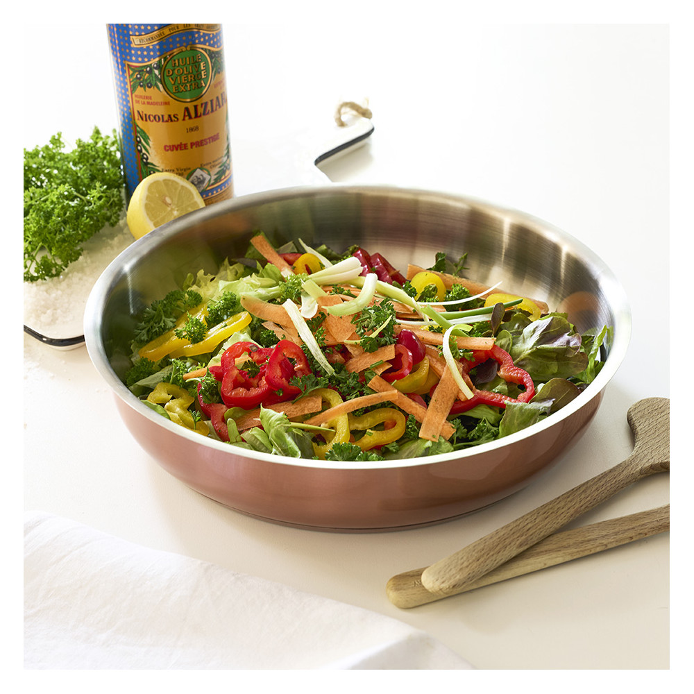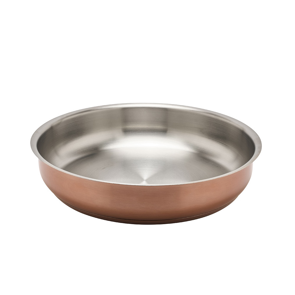 Alliez élégance, polyvalence et efficacité en cuisine avec ce lot de 3 poêles en inox effet cuivré, conçu pour s’adapter à toutes vos envies culinaires.
