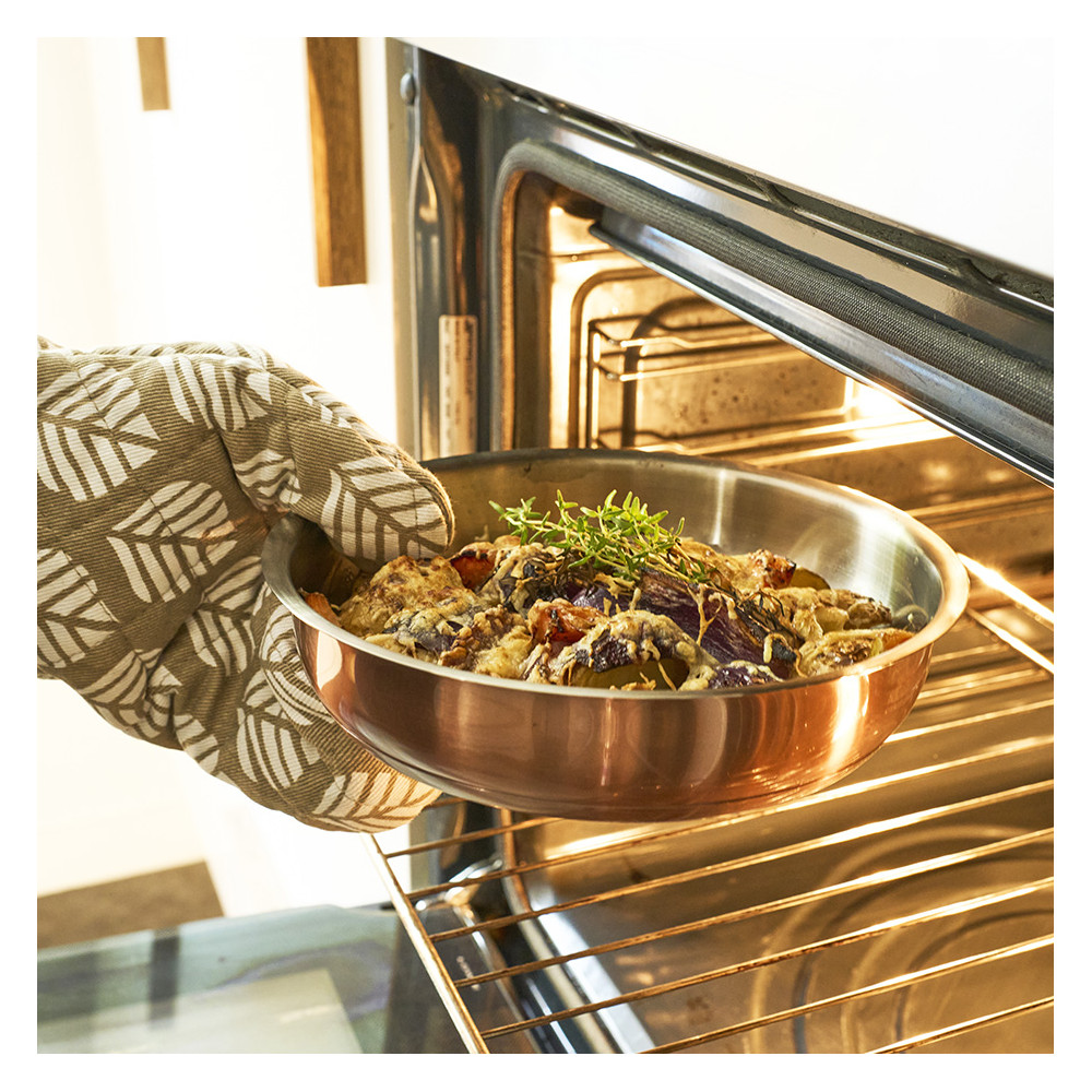 Leur look cuivré chic apporte une touche moderne et raffinée à votre cuisine, que ce soit sur la plaque ou à table.
