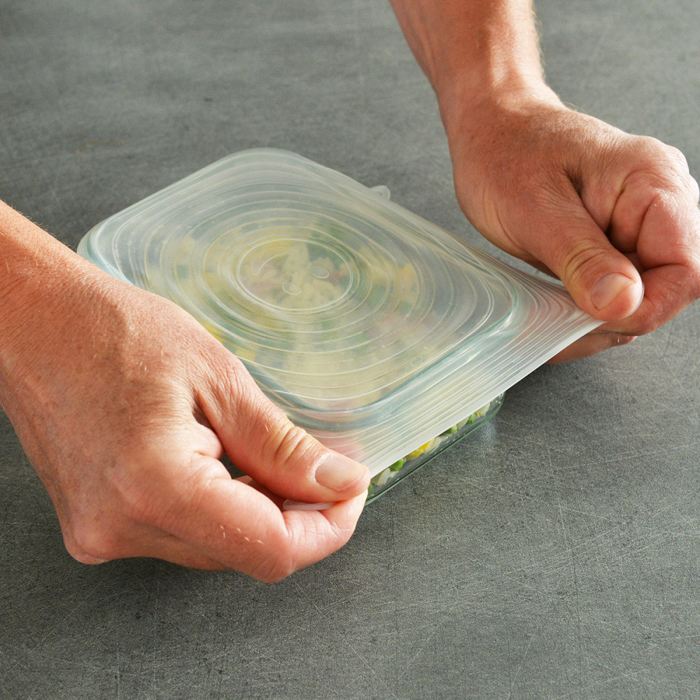 Pratiques pour conserver vos aliments et préparations, ces couvercles en silicone sont extensibles.