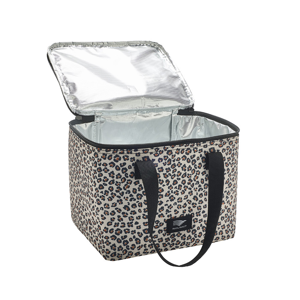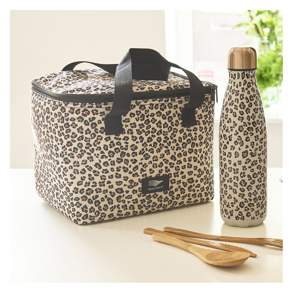 - Sac isotherme motif léopard avec anses pour un transport facile.