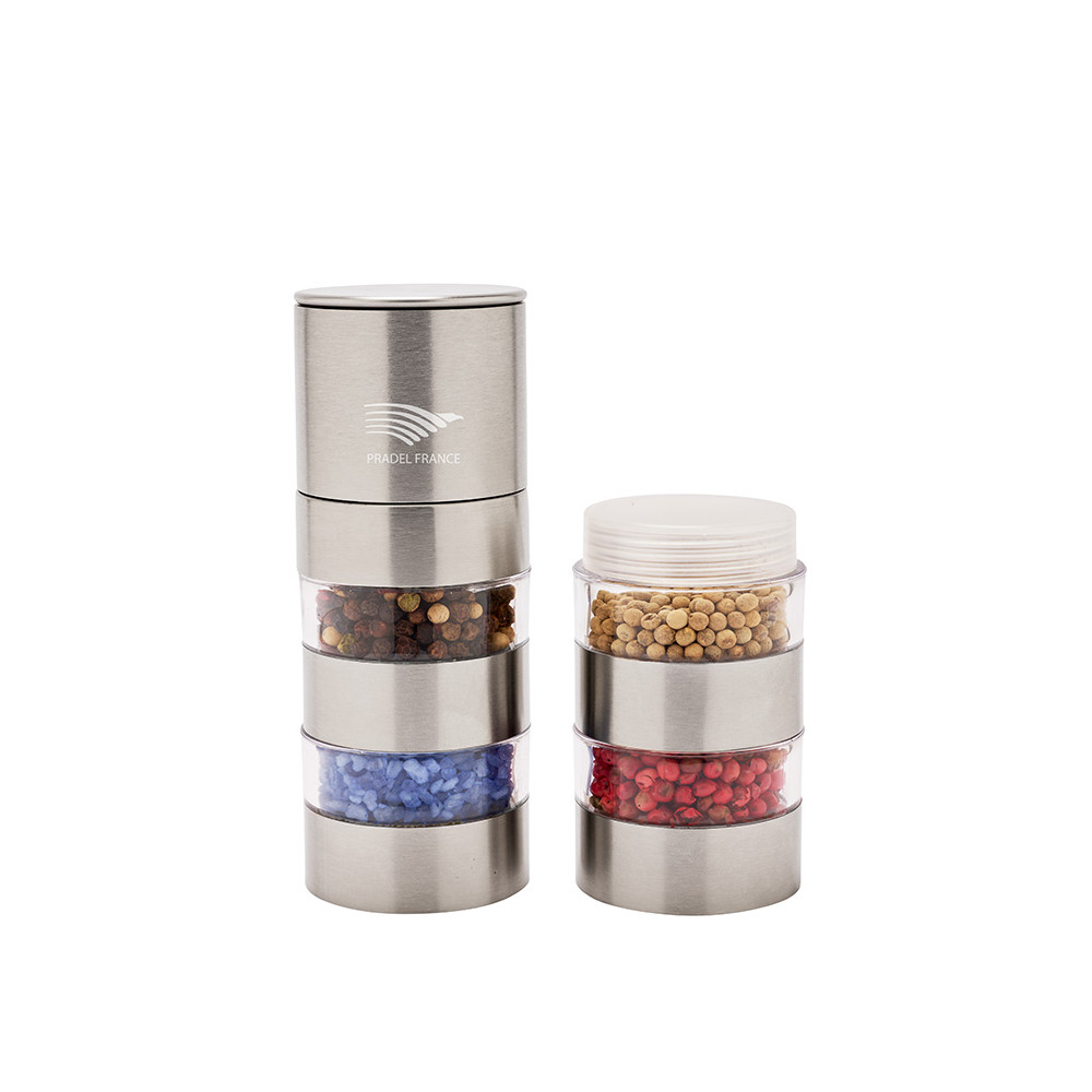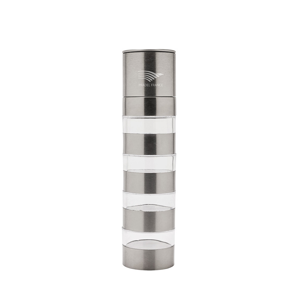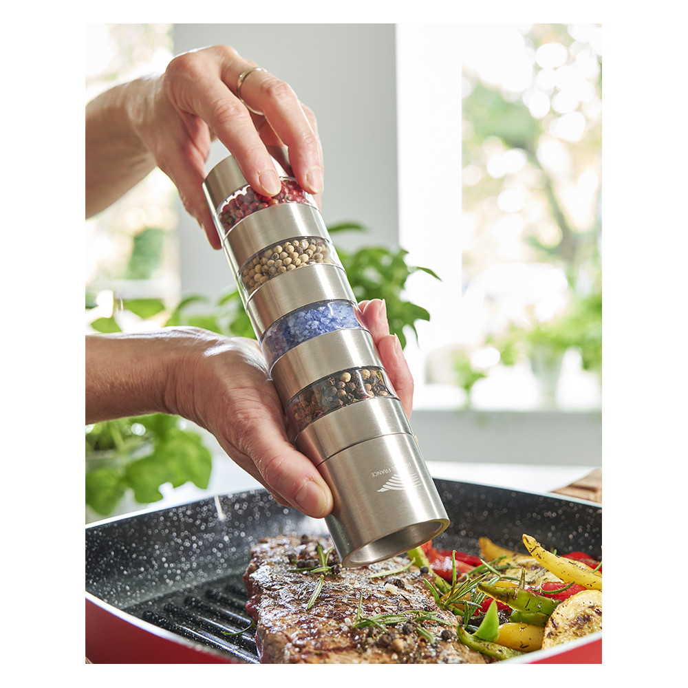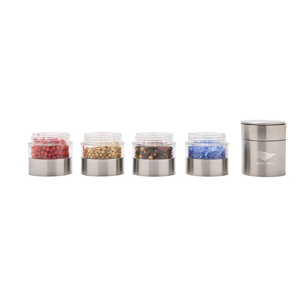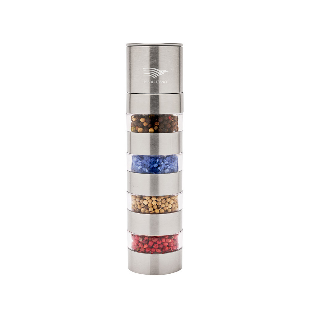 Doté de 4 réservoirs interchangeables, ce moulin vous permet d’y insérer vos épices favoris, poivre, baies, sel, curry, paprika…
