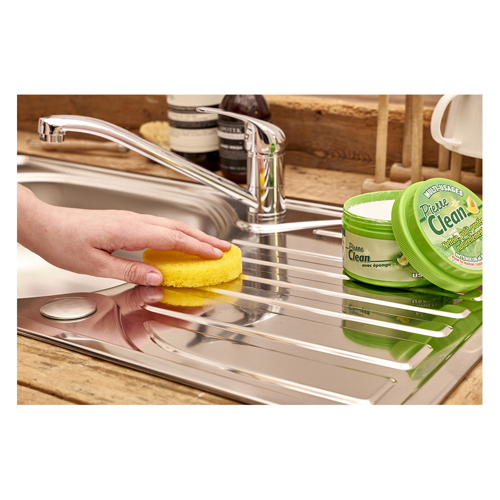 Nettoyez vos ustensiles de cuisine et vos plaques de cuisson naturellement avec la pierre d'argile et son éponge. Grâce à elle, redonnez l'éclat du neuf au cuivre, à l'inox, à la fonte d'aluminium, mais aussi aux plaques de cuisson, éviers et hottes en inox.