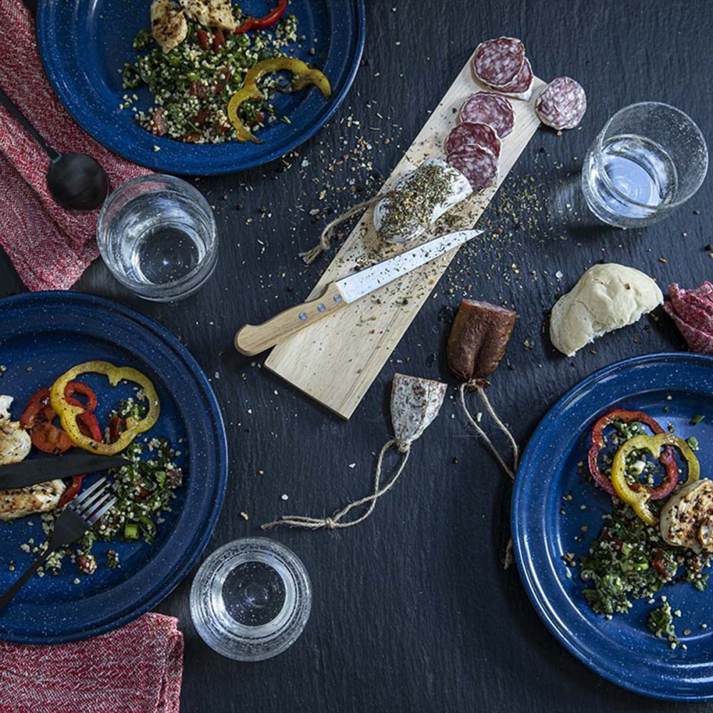 Son couteau, doté d'une lame en acier inoxydable et d'un manche riveté en hêtre, vous assurera une qualité de découpe idéale pour le saucisson, saucisse sèche et chorizo.
