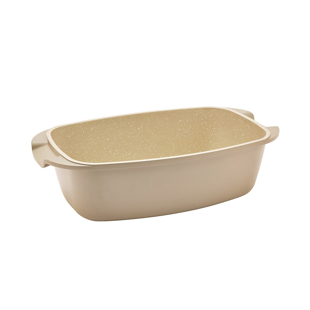 Conçu en fonte d'aluminium, il est doté d'un revêtement céramique européen aux propriétés antiadhérentes multicouches, garanti sans PFAS, sans PTFE et sans PFOA. Grâce à lui, les aliments n'accrochent pas, la cuisson est uniforme et garde toutes les saveurs des aliments.