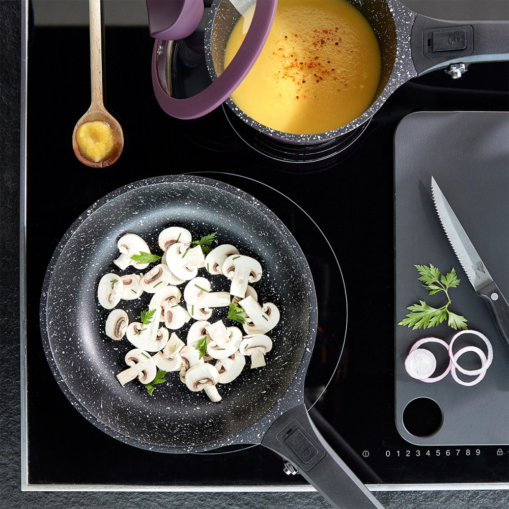 Cette poêle en fonte d'aluminium est idéale pour saisir vos aliments sans en perdre le goût.