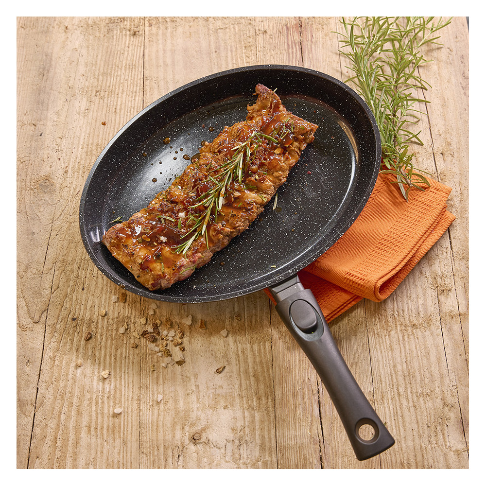 Grâce à son manche amovible, cette poêle combine praticité et gain de place, facilitant le rangement dans vos placards.