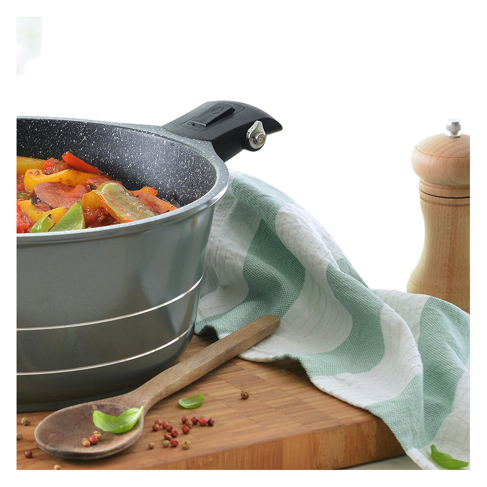 Facile d'utilisation, elle vous permettra de passer de votre sauteuse à votre faitout en fonte d'aluminium en un tournemain.