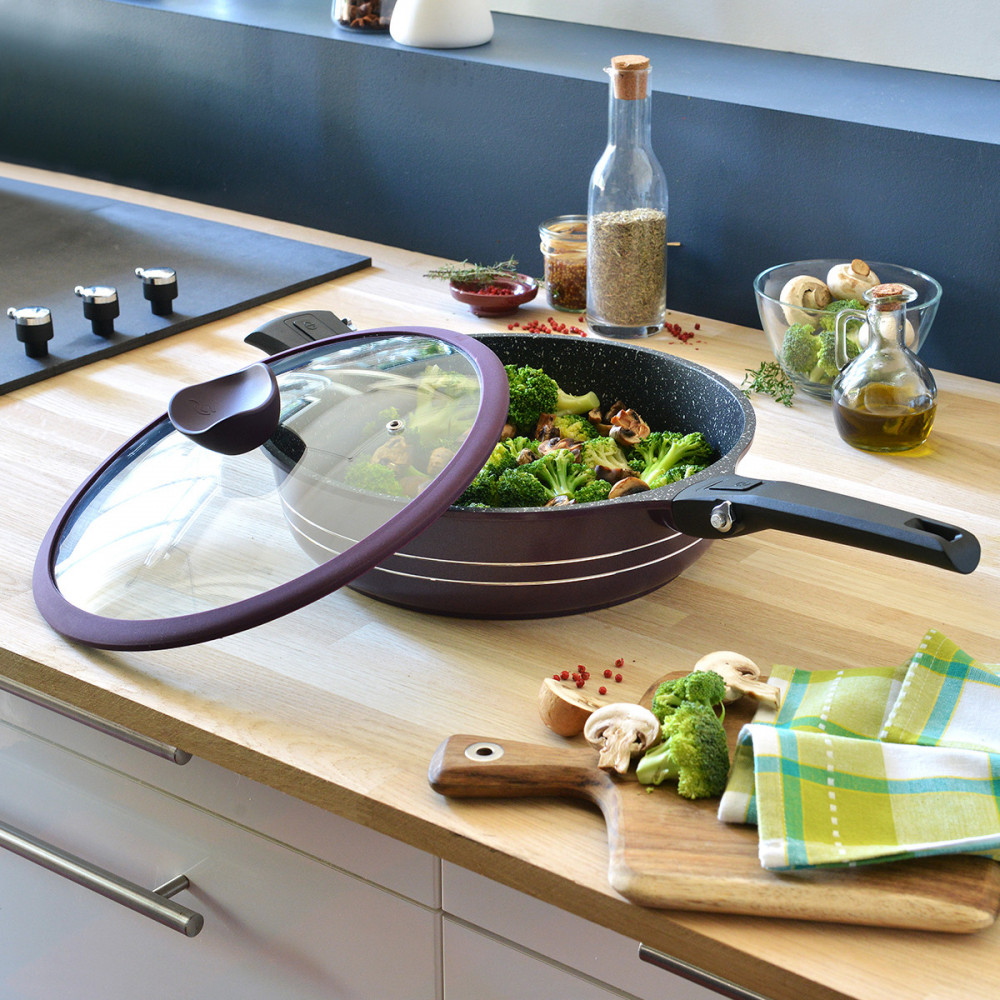 Dotée d'un couvercle en verre avec valve anti-débordement, cette sauteuse vous permet de sauter, griller et cuisiner en toute sécurité.