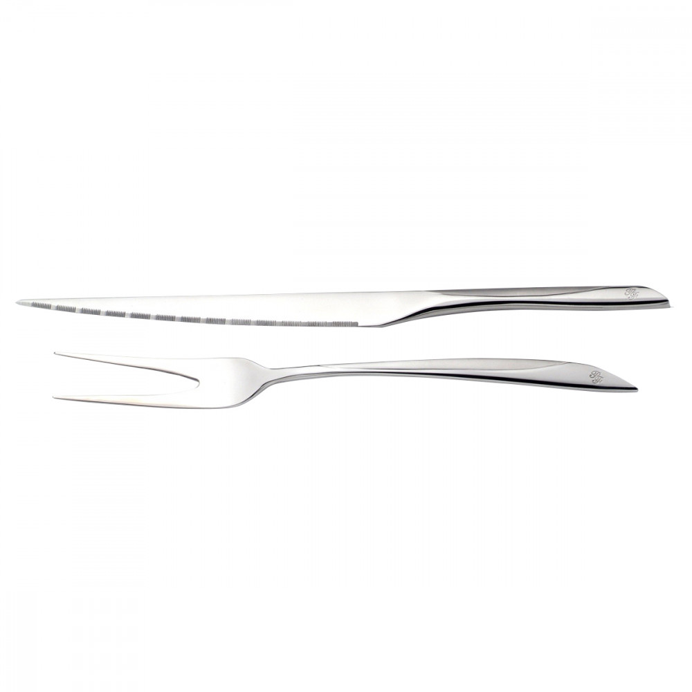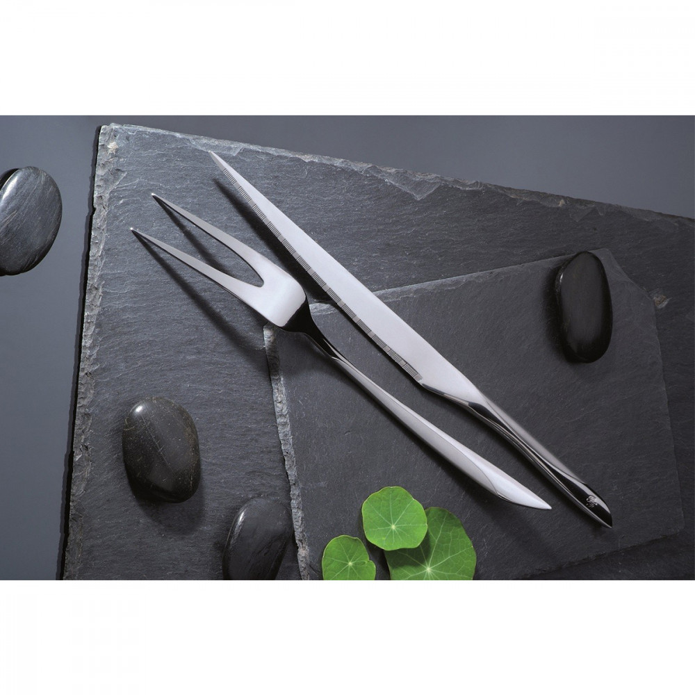 Ce service à viande aux lignes sobres et raffinées saura mettre votre table à l'honneur. Il est composé d'une fourchette à viande et d'un couteau réalisés en acier inoxydable avec une finition satinée.