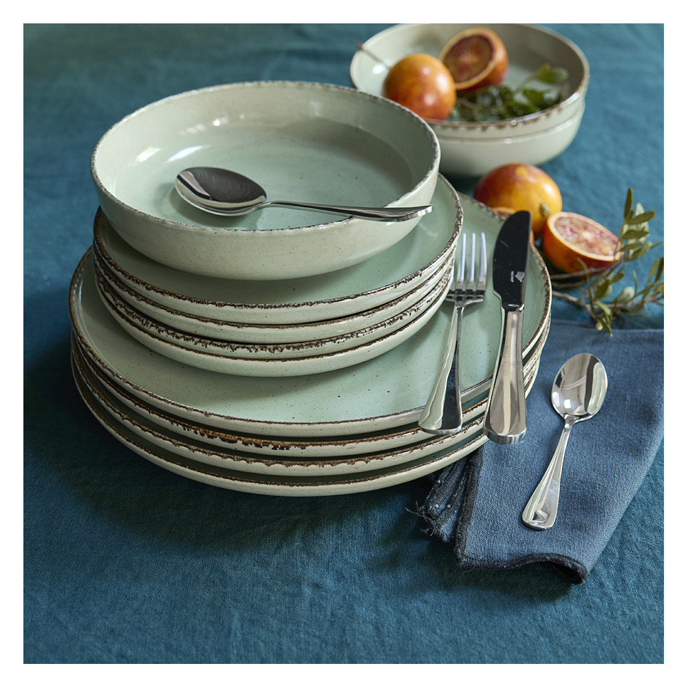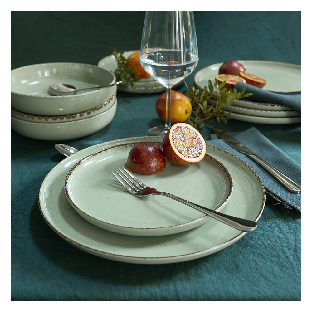 - Assiettes creuses en grès qui combinent robustesse et design raffiné.
